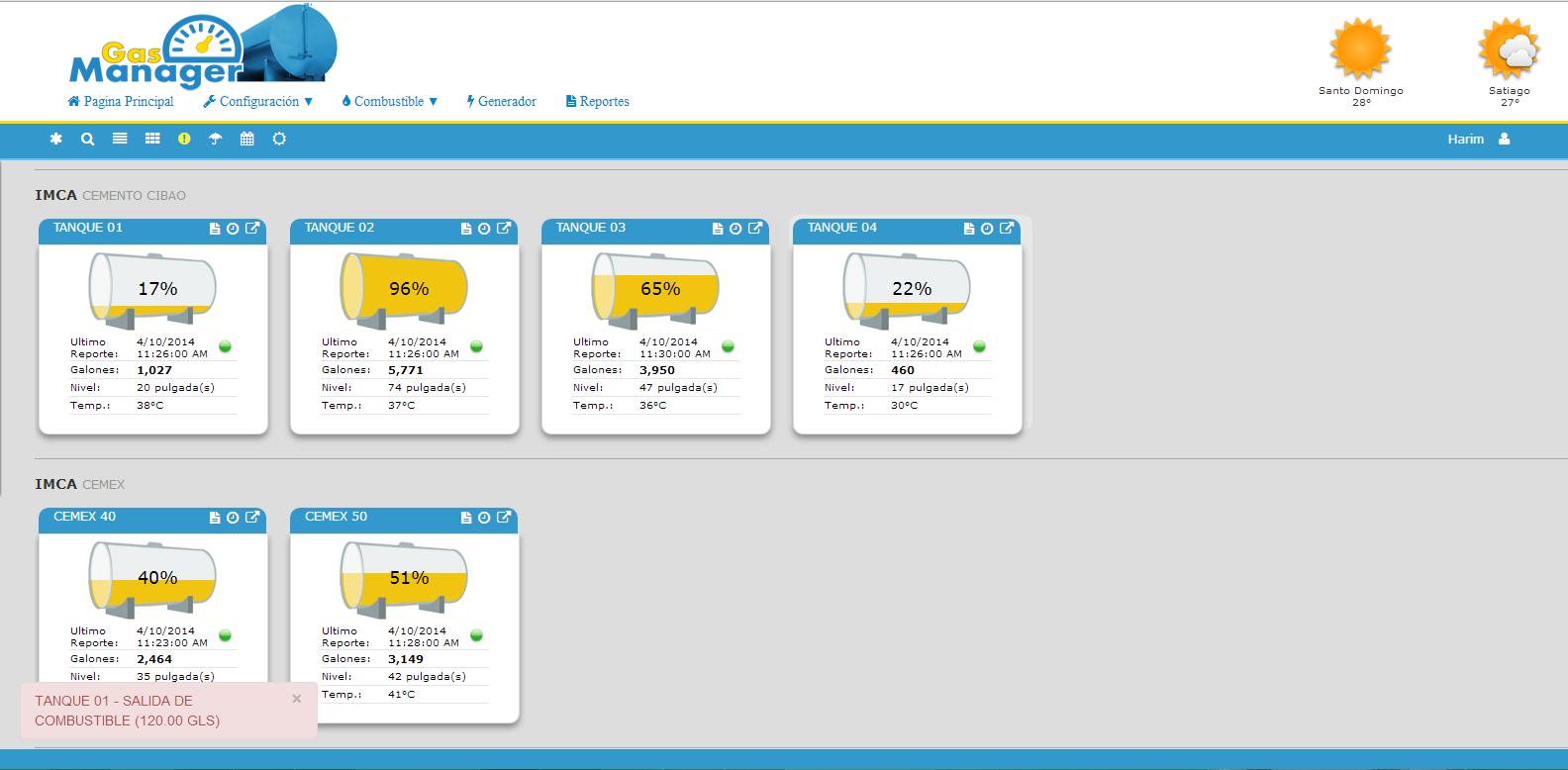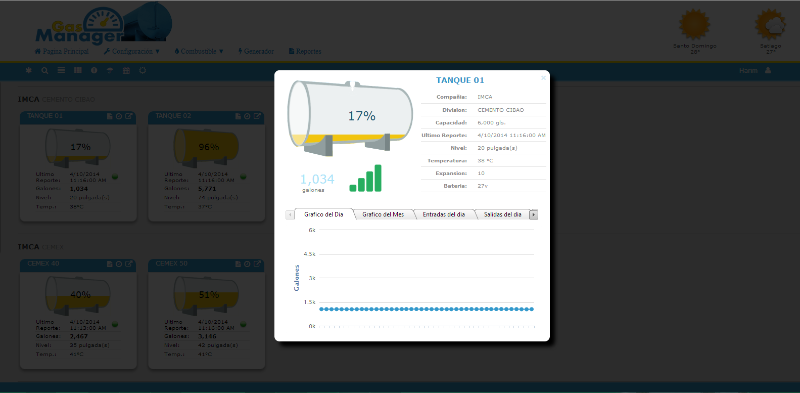 Monitoree sus tanques para ver su estado actual, las entradas y las salidas de cada dia o en cada momento